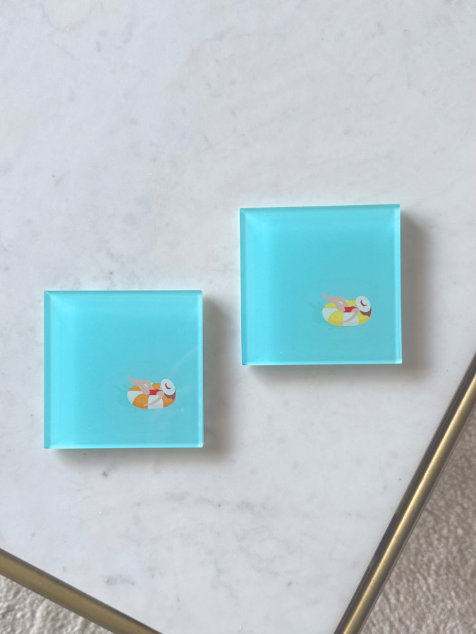 “La Bouée Jaune” Coaster – Designed by Ana, Christian Choisy’s granddaughter. Printed on plexiglass. Dimensions: 10 x 10 cm. Ref: SVPLEXILABOUEEJAUNE
